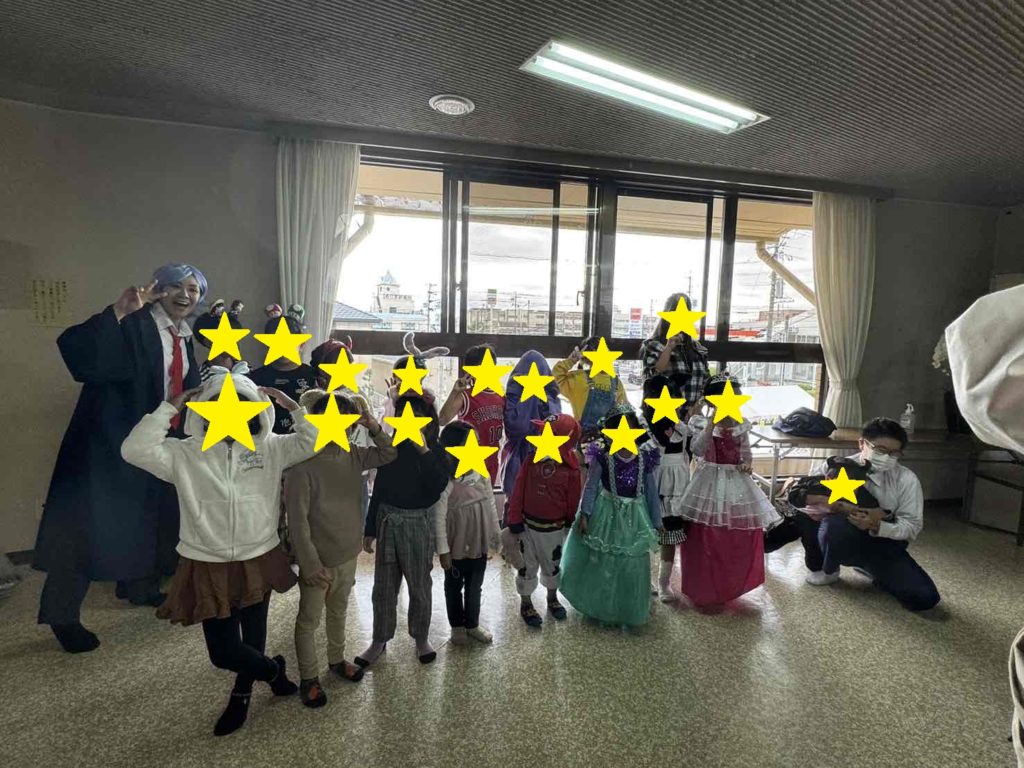 去年はクリスマスソングを歌ったので、クリスマスカラーの仮装でしたが、今年はいつもレッスンで歌っている歌の披露でしたので、ハロウィンと同じような仮装での出演でした。
